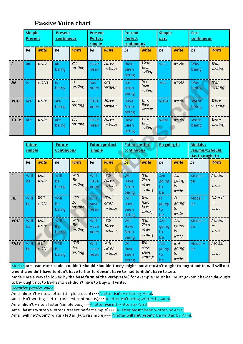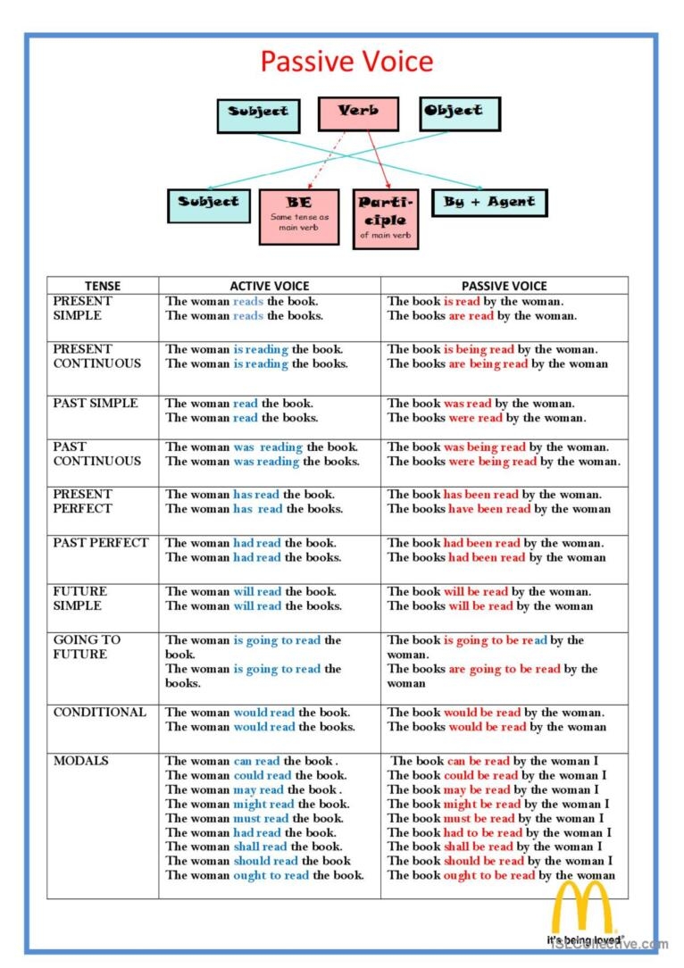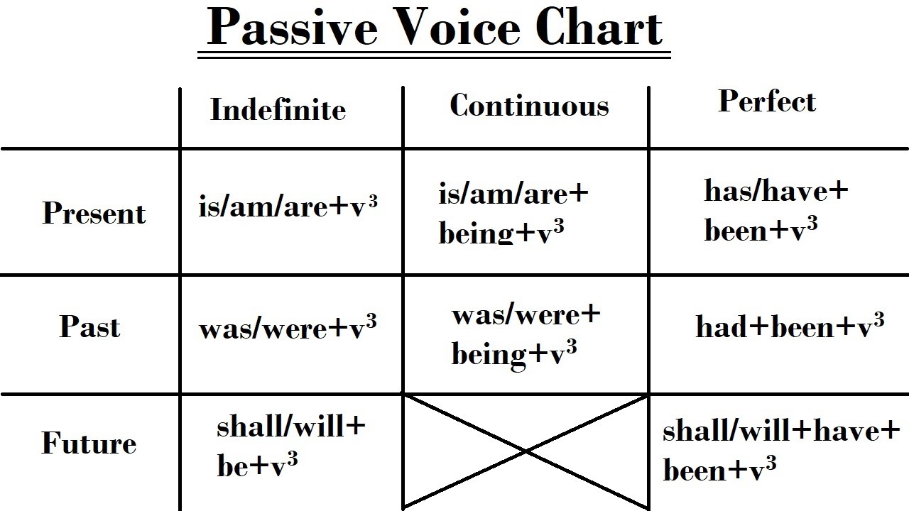 Below is a passive voice chart that illustrates the structure of passive voice in different tenses: