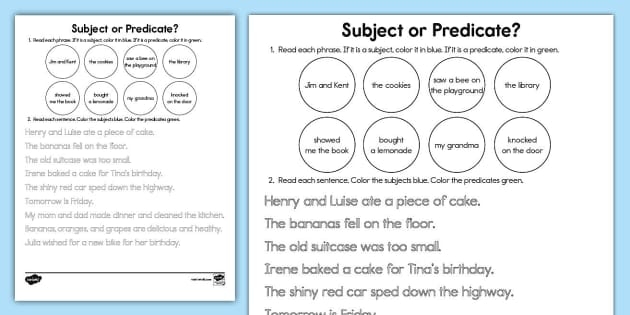 A predicate identification worksheet is a useful tool for students to practice identifying predicates in sentences. These worksheets typically contain a series of sentences where students need to identify the subject and predicate. By completing these exercises, students can strengthen their understanding of predicates and improve their sentence construction skills.