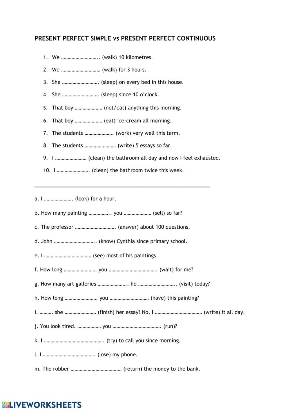 Present Perfect Simple Vs Present Perfect Continuous Worksheet Artofit