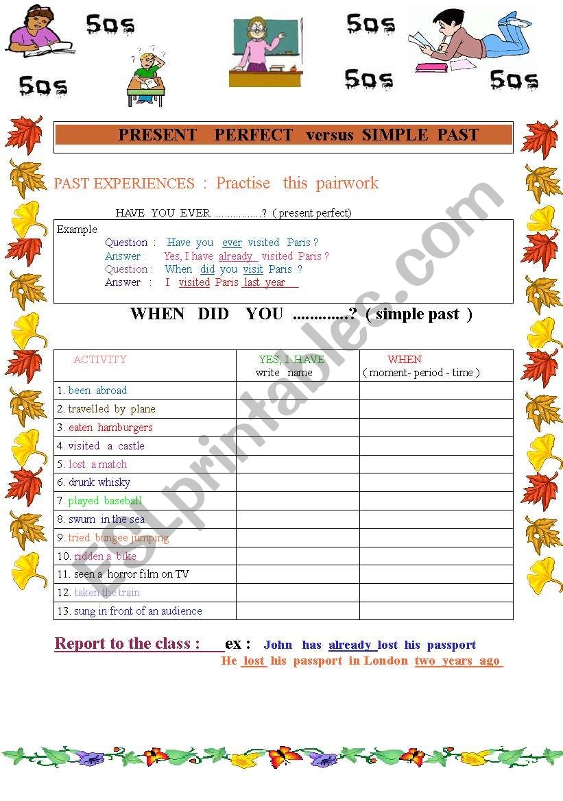 Download and Print present perfect versus past simple Listed below