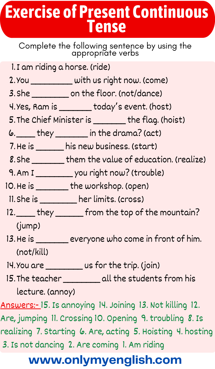 In conclusion, mastering the present tense is essential for effective communication in English. By engaging in exercises like the one presented above and consistently practicing, you can strengthen your grasp of this important tense. Keep practicing and don’t hesitate to seek additional resources or guidance to further improve your proficiency.