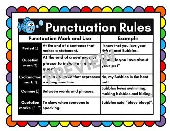 In conclusion, punctuation rules play a crucial role in writing by helping to clarify meaning and enhance communication. An anchor chart is a useful tool for learning and remembering punctuation rules, providing a visual reference guide for students to use while writing. By following punctuation rules and referring to an anchor chart, students can improve their writing skills and convey their ideas more effectively.