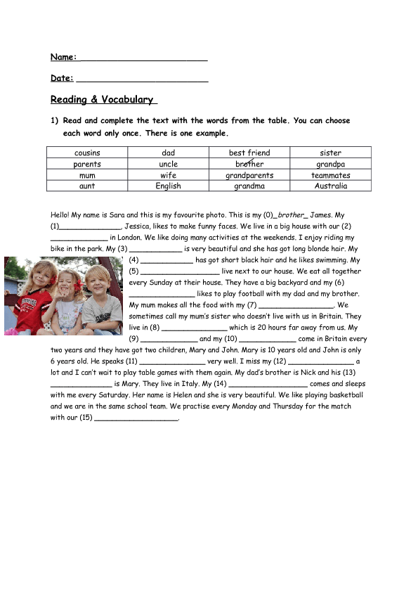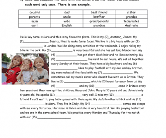 Reading Comprehension Vocabulary Exercise Family Members