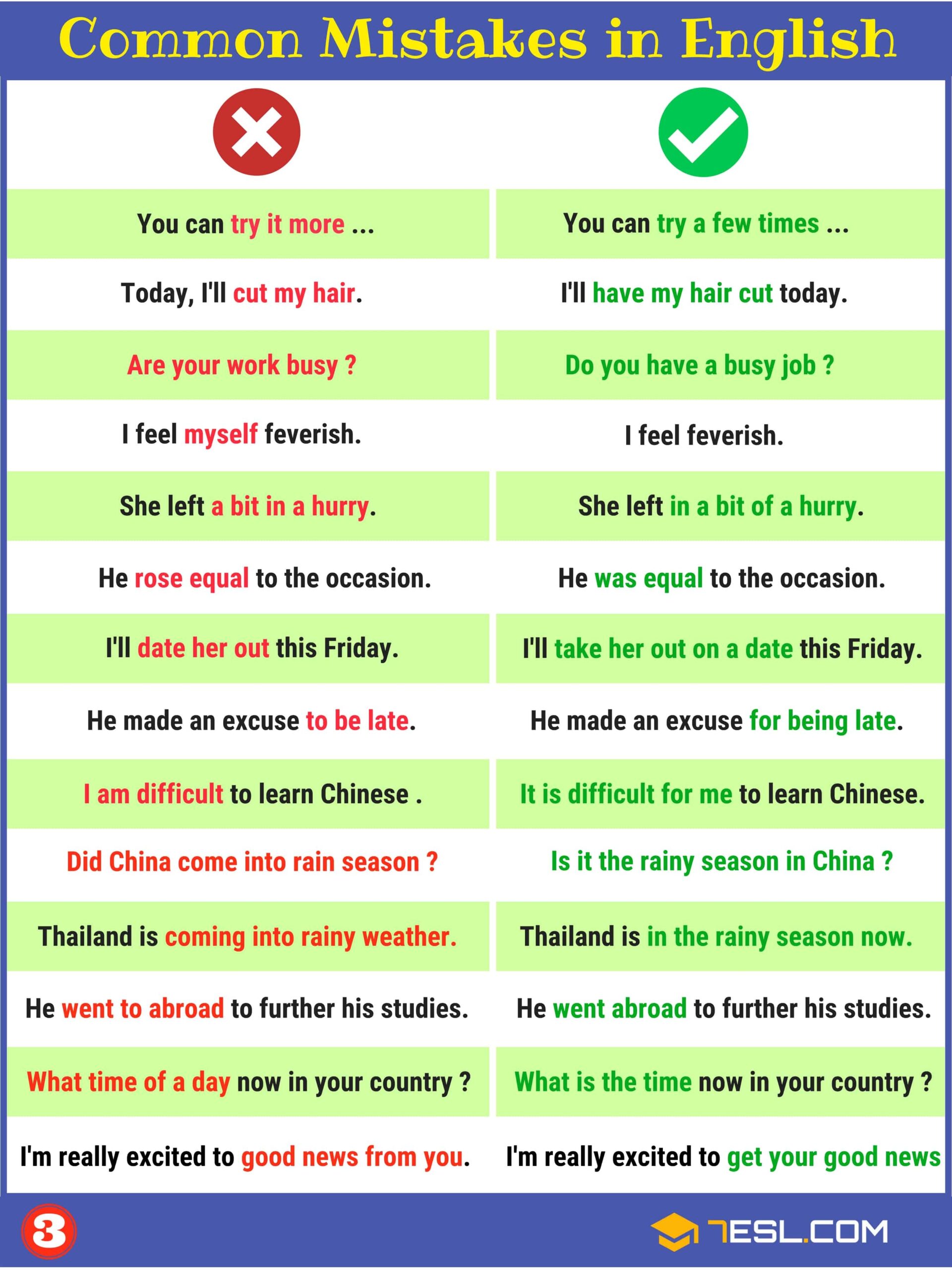 It is also important to pay attention to the correct use of tenses in grammar. Mixing up past, present, and future tenses can lead to confusion in writing. For example, saying “I have went to the store yesterday” is incorrect, as “have went” should be “have gone” to maintain proper tense consistency.