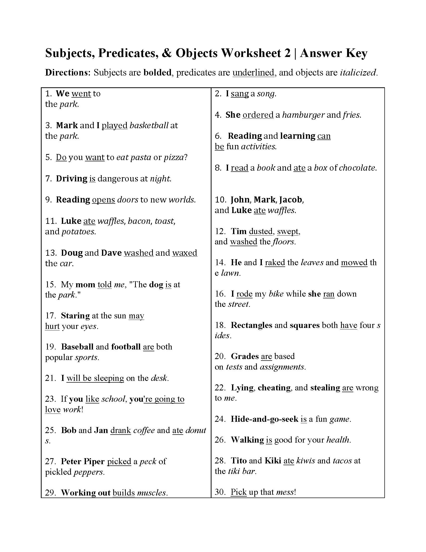 In conclusion, subjects and predicates worksheets are an excellent resource for students looking to strengthen their understanding of sentence structure. By engaging with these worksheets, students can develop their grammar skills and become more proficient writers. Practicing with subjects and predicates worksheets can lead to improved communication and clarity in written language.
