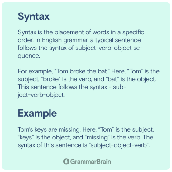 One key aspect of syntax grammar is sentence structure, which involves the arrangement of words and phrases to form coherent sentences. In English, sentences typically follow a subject-verb-object order, but there are variations depending on the type of sentence being used.