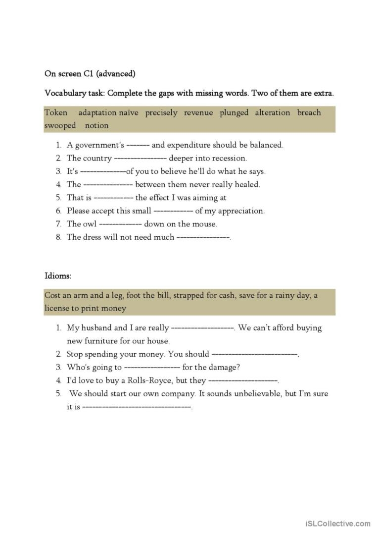 Furthermore, vocabulary worksheets for adults are designed to be engaging and interactive, making the learning process enjoyable and effective. They often include activities like word puzzles, matching exercises, and fill-in-the-blank questions, which not only reinforce new vocabulary but also improve retention and recall.